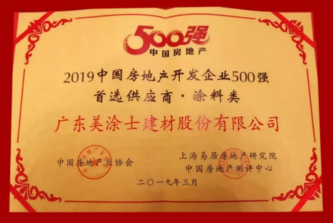 四喜同来|美涂士蝉联“中国房地产500强首选供应商品牌”