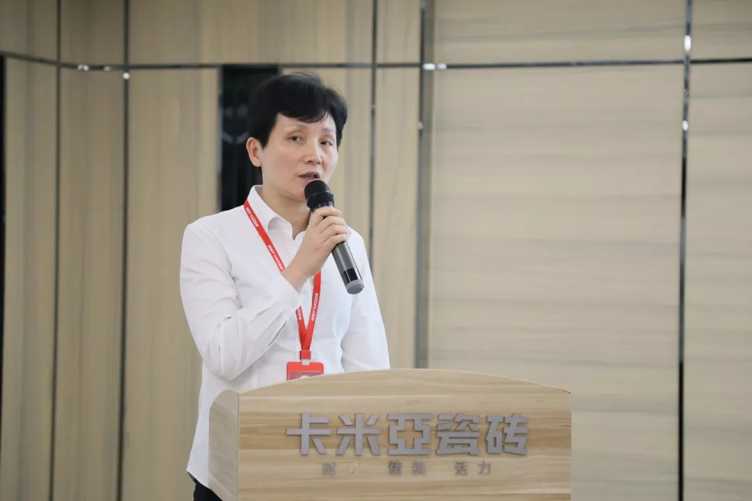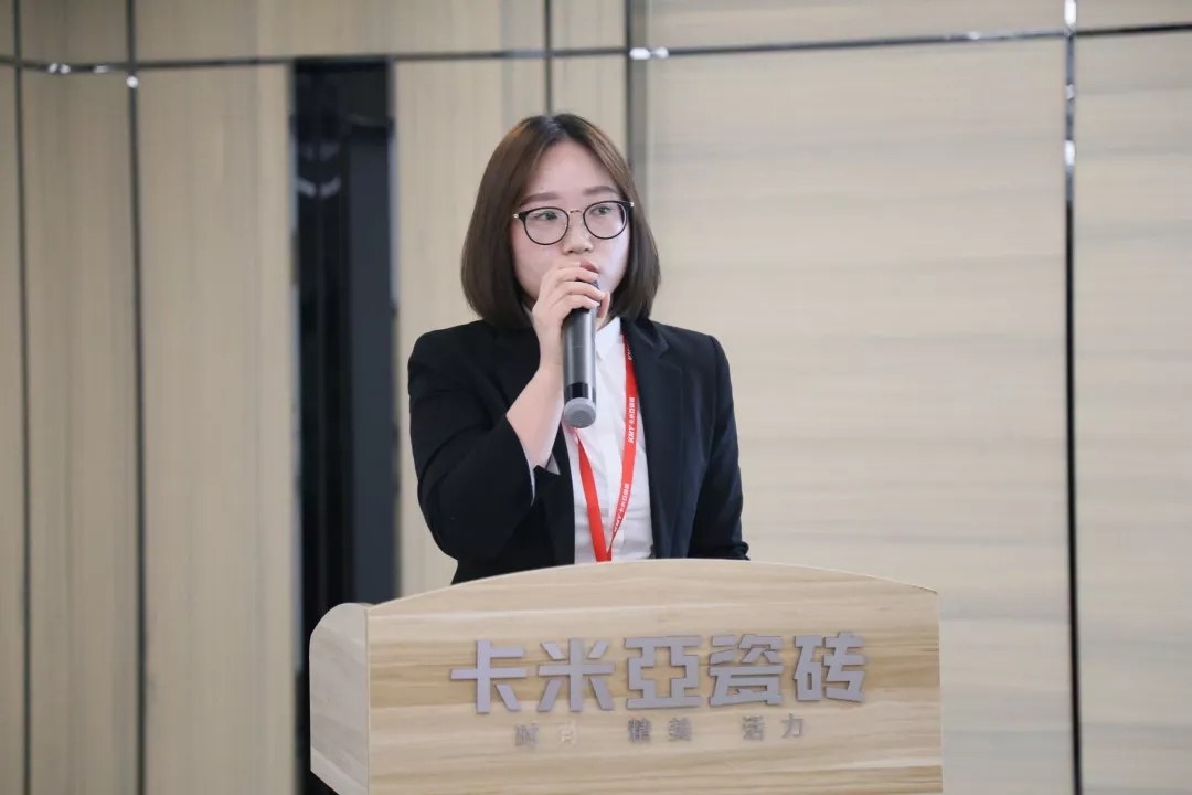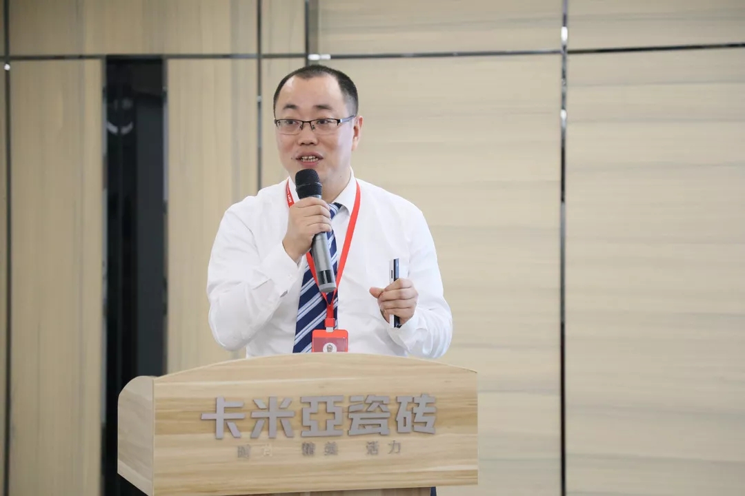 卡米亚瓷砖销售副总丁彬及各大区销售总监分别从销售业绩、网点开拓、店面建设及终端活动的维度对各项销售工作进行总结和规划。