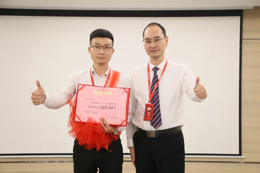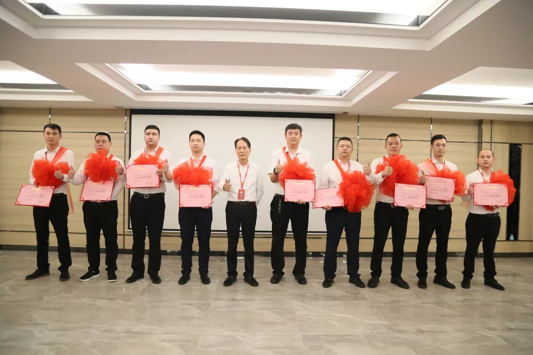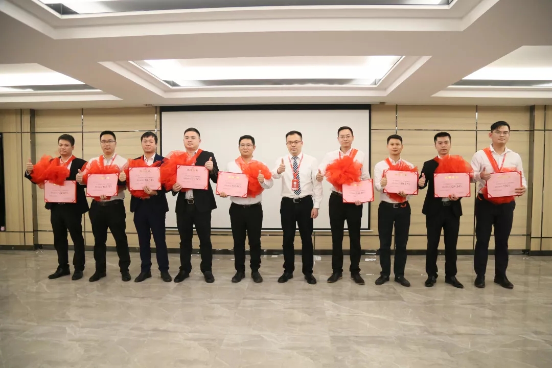 卡米亚总经理李丹锋与季度销售冠军合影