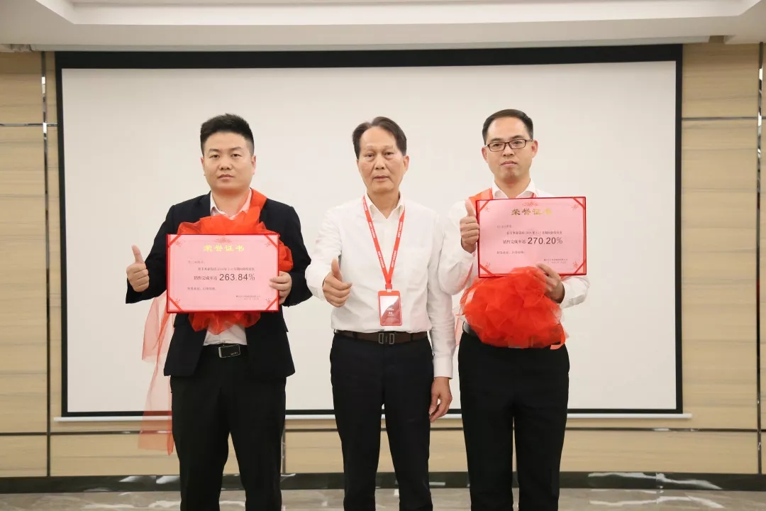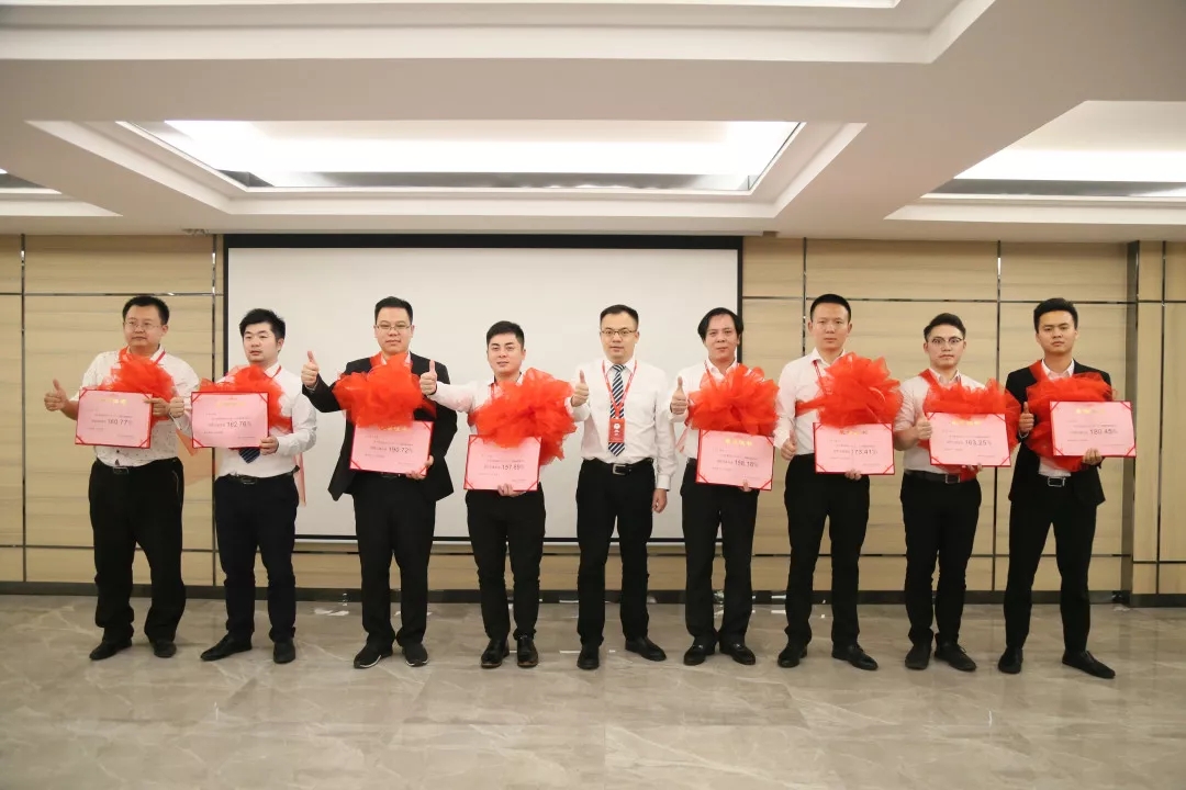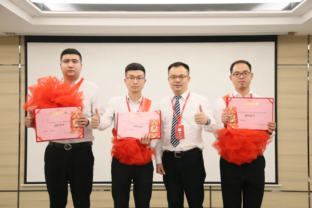 销售副总丁彬为第一季度销售冠、亚、季军颁奖
