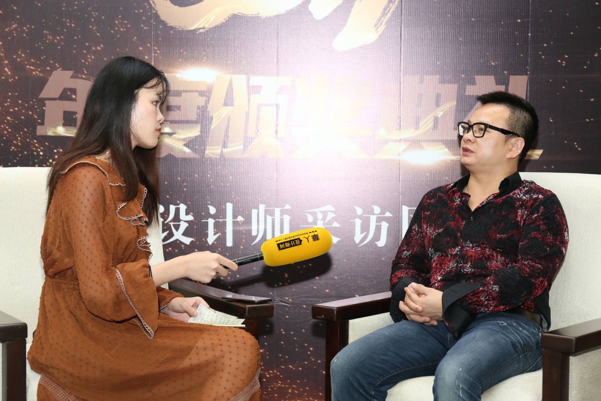 采访现场汪大锋(右一)华人设计师网记者(左一)