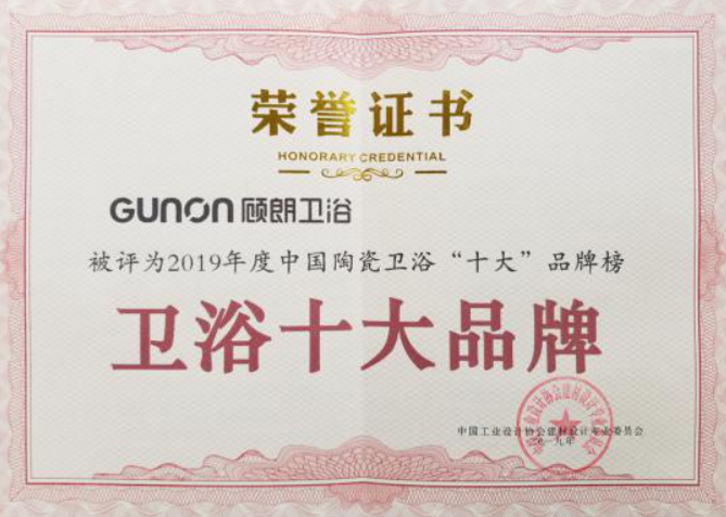 顾朗卫浴---实至名归!荣获“卫浴十大品牌”