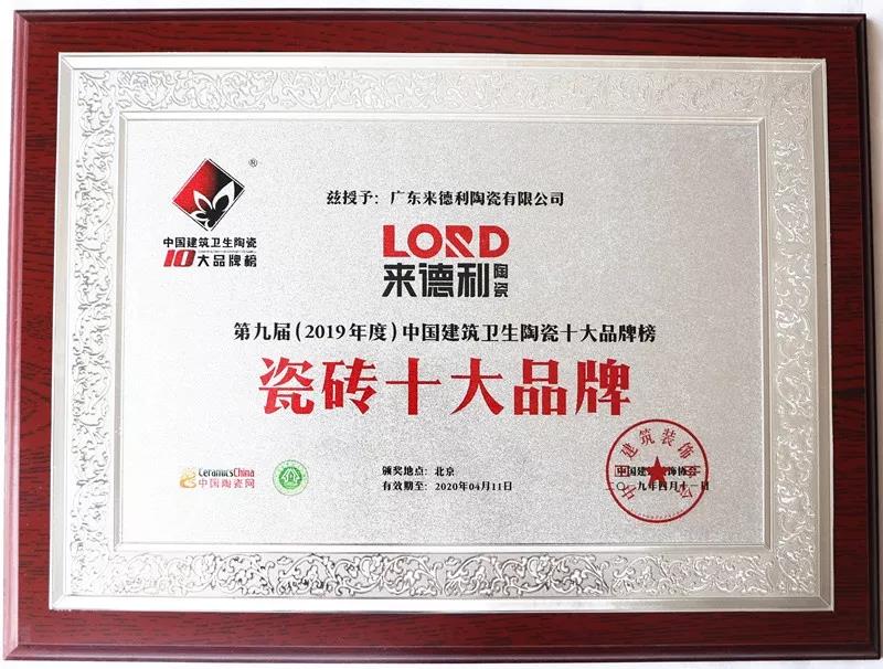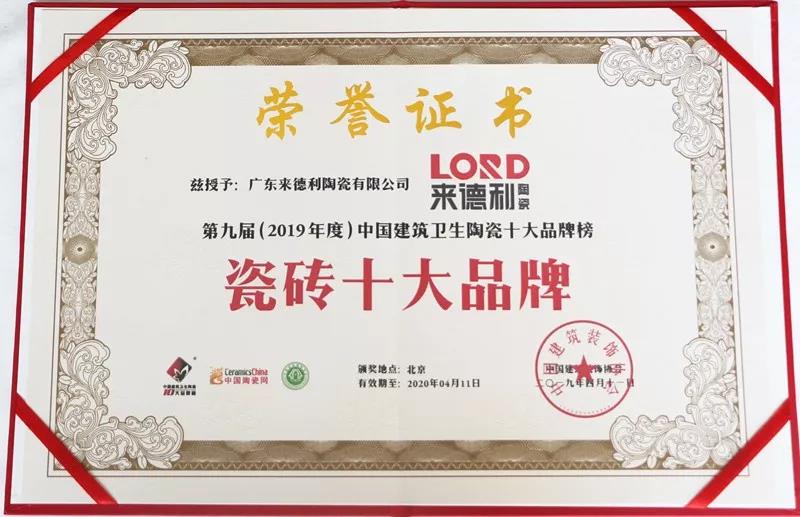 又双叒叕拿奖了,来德利斩获“瓷砖十大品牌”荣誉