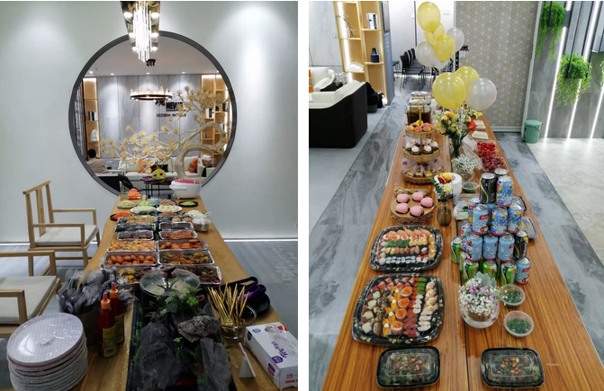 在品牌动态讲解完毕后,顺6美食摄影大赛正式开始。精美的烘焙甜品、超级豪华的寿司船、各式各样的简餐和缤纷多彩的水果及饮品出现在顺辉现代仿古展厅内,大家纷纷拿出自己的拍照神器和最佳姿势,对着美食,找准顺辉空间的最佳构图,一阵狂拍。