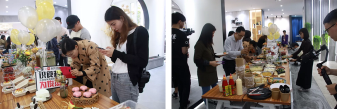 香气美丽的花艺、精心烘焙的甜品、逗趣的美食宣言、二次元吃货集结......让媒体朋友们一入场就感受到了美食和现代仿古顺心空间带来舒适感,生活就应该这么享受。