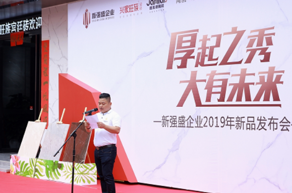 在新品发布会上,新强盛企业许国强董事长表示兴家旺族宫廷砖是陶瓷行业的新星,将会凭借自身的优势与品牌策略,以后起之秀的姿态向世界展示中国企业的风采。