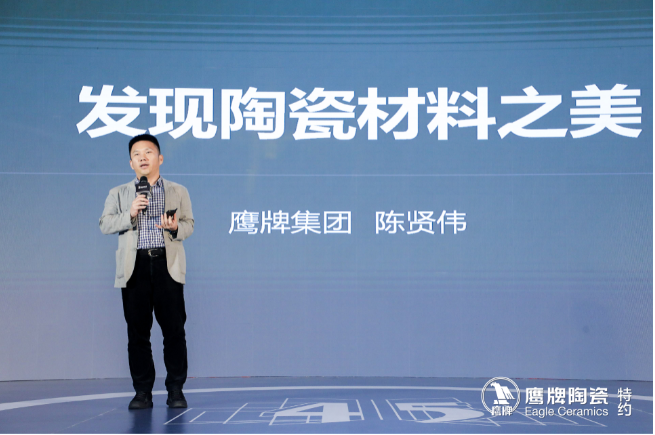 启动礼上,鹰牌集团陈贤伟副总裁发表了"发现陶瓷材料之美"的演讲。他说,城市精装化让陶瓷的美感被忽略,事实上这个世界不缺好的材料,缺的是对文化的理解和对美感的发现,鹰牌拥抱设计师,就是期待中国设计发现陶瓷之美,希望中国设计为陶瓷材料创造期待。