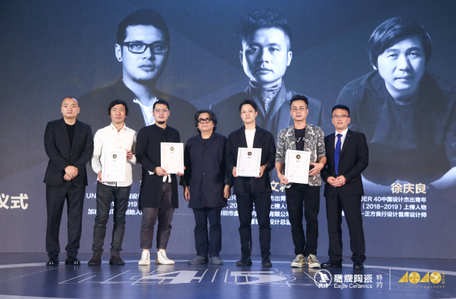 在现场逾1000名设计师的共同参与和见证下,鹰牌集团总裁林伟先生、鹰牌陶瓷品牌总经理郑雄林先生、广州设计周执行总监贺文广先生、goodone旧物仓创办人杨函憬先生、集美组设计机构创始人/创意总监林学明先生、加减智库联合创始人/设计总监胡彦先生、深圳市盘石室内设计有限公司董事长/设计总监吴文粒先生、瑞坤国际正方良行设计首席设计师徐庆良先生、Leaping Creative立品设计创始人/设计总监郑铮先生,共同启动“40 UNDER 40中国设计杰出青年(2019-2020)”,正式开启2019 年40 UNDER 40”新篇章和新征途,一起见证40 UNDER 40从“荣誉榜单”向“成长社群”的转变与重构!