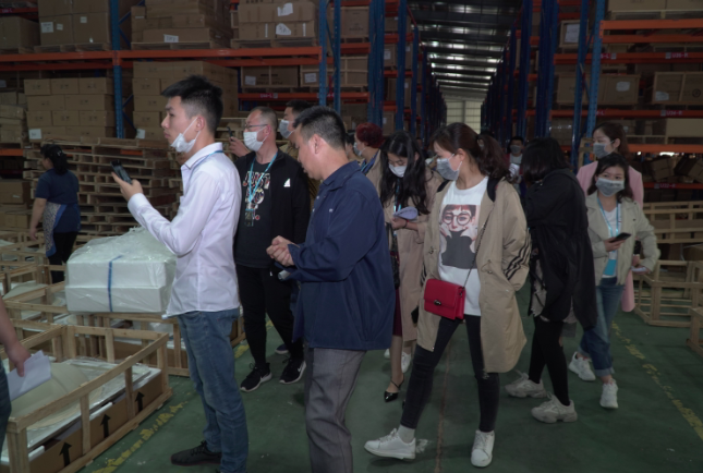 在参观生产基地环节,普瑞凡向在场经销商朋友们详细讲解了从选木到切割,再从拼接到上漆等整个生产流程。普瑞凡向来宾展示了生产上强劲的品牌实力,也让他们了解到浴室柜的制作过程是如何的精细繁复。