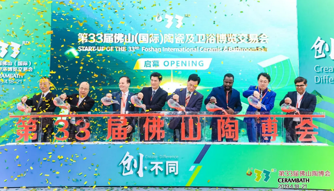 (华南家居网讯)4月18日上午,第33届佛山(国际)陶瓷及卫浴博览交易会(以下简称“佛山陶博会”)在广东佛山国际会议展览中心展馆盛大开幕,中国陶瓷城展馆、中国陶瓷总部展馆同步举行启幕仪式。来自古巴、巴西、塞内加尔、新加坡领馆,大韩贸易投资振兴公社、坦桑尼亚中华总商会、西班牙商会、欧美工商会的领事馆商会代表,投资界代表、政府代表、领事馆商会代表、国内外陶瓷企业家代表、设计师、参展商代表、新闻媒体代表以及中国轻工业联合会、中国陶瓷工业协会、中国建筑卫生陶瓷协会、中国室内装饰协会,淄博、福建、南安、晋江、夹江等行业协会代表近千人莅临现场,共同见证第33届佛山陶博会拉开序幕!