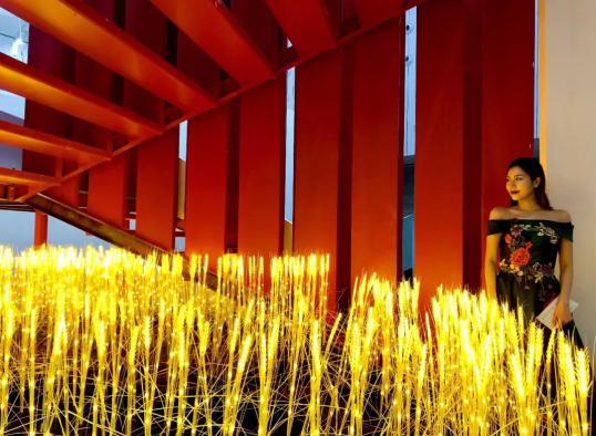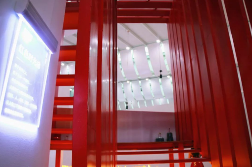 展馆外围是错落有致的绿居时代城市建筑,和连接上下空间的红色穹顶,让人沉溺在空间中,堪称“红”与“绿”的高级搭配!