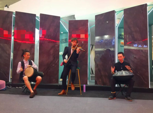丹青馆内,还有来自不同艺术的互相融合。跨界音乐,顺辉瓷砖构建的空间建筑,也似一种灵动音乐。优秀的乐器乐手演奏出优雅品质的乐章,让参观者在丹青馆里享受了一次视听盛宴,也让参观者更直观的感受到顺辉顺居空间下给予人内心的舒畅。