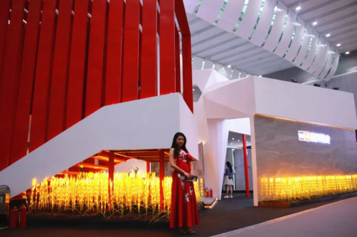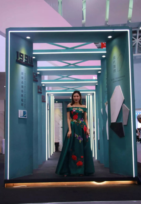 跨界服装艺术,丹青石,也是家居空间中的华服。丹青馆将顺辉的红和丹青的青延伸到人和服装上,身着华美服饰的模特,一边展示着服装里的文化寓意,一边传达着丹青石融合及表现的外在色彩,为参观者打造一场视觉盛宴,也让参观者领略到丹青石给予顺心生活空间丰富多彩的可能。