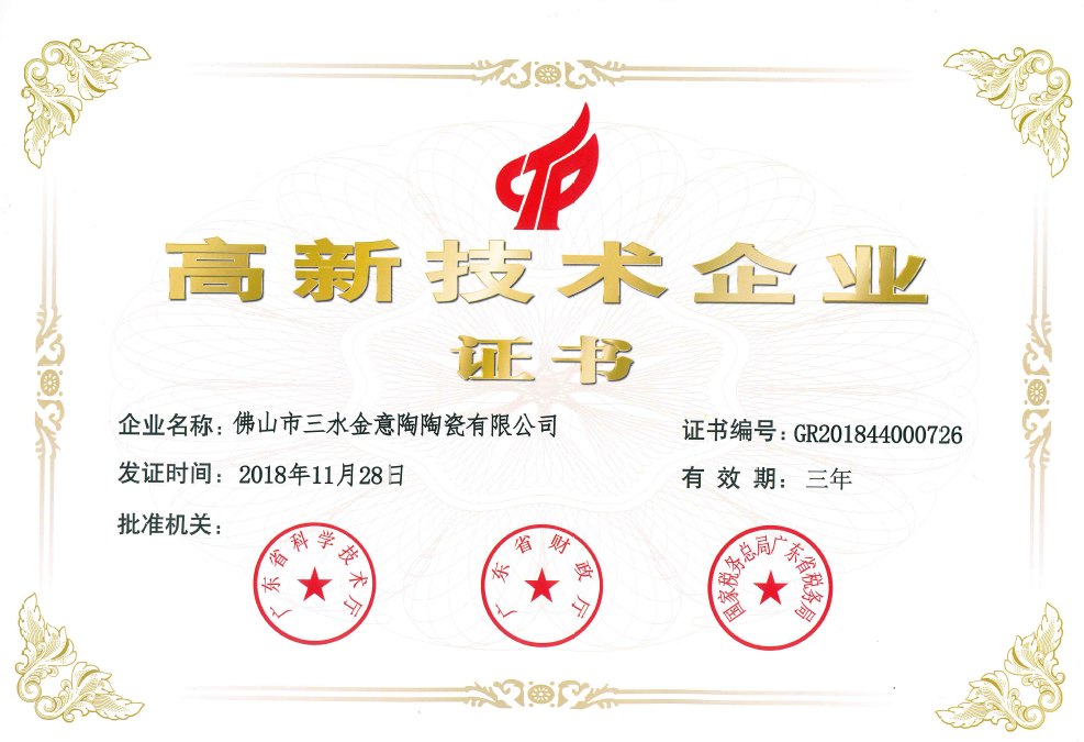 实力加冕丨金意陶荣膺「广东省2018年高新技术企业」称号