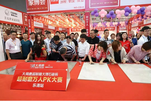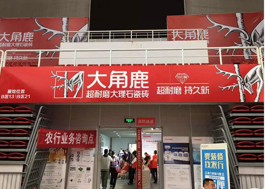 乐清市首届家博会满场都是大角鹿超耐磨大理石瓷砖。