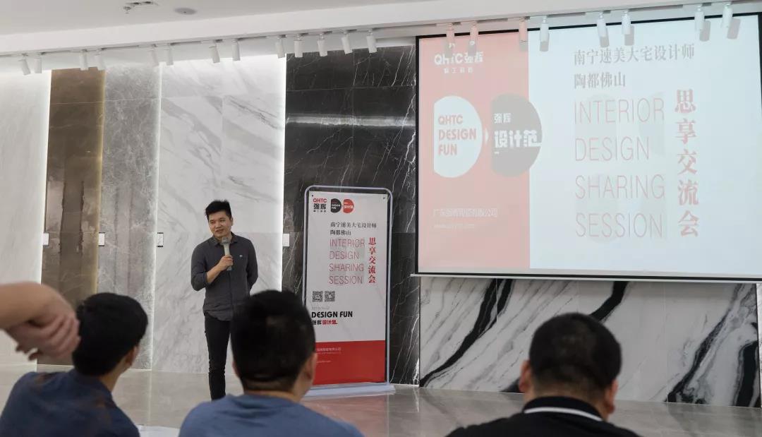 ⊙强辉品牌广西区域苏经理发表主题演讲,为现场设计师详细讲解了强辉产品体系以及砖面工艺,让设计师们更深入了解强辉。