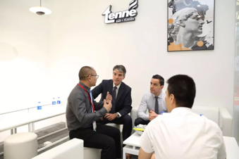 (奥地利缇诺卫浴总部CEO Mathias Birkner先生、CMO Christian Michael Birkner先生与腾讯家居记者合影)