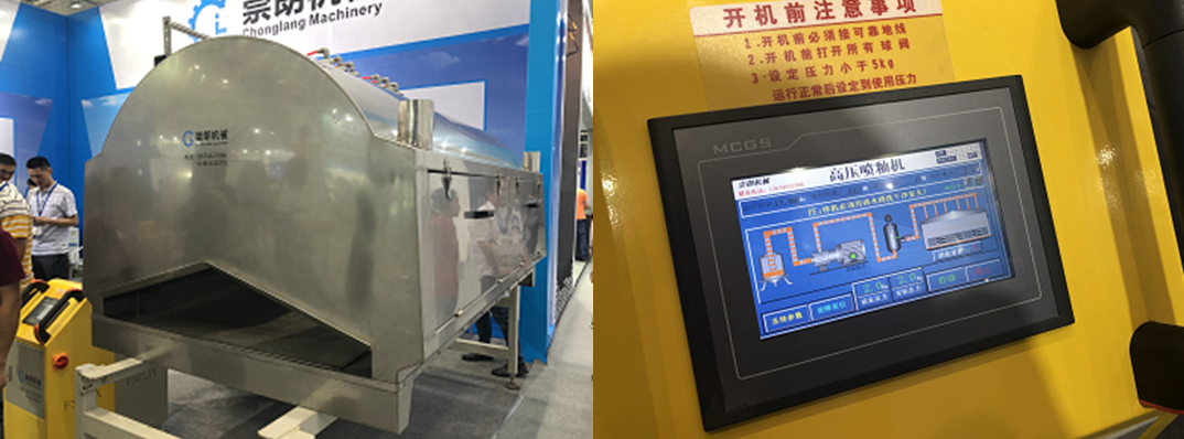 代敏:第二次参展,这一次的新产品有高压喷釉机,喷釉压力高达20公斤,雾化更好,更均匀,可满足干粒釉的喷施,减少生产成本,提高生产效率。这款喷釉机我们采用压力传感器和变频追踪控制,保证施釉压力稳定。智能的触摸屏界面,使用更方便贴心。
