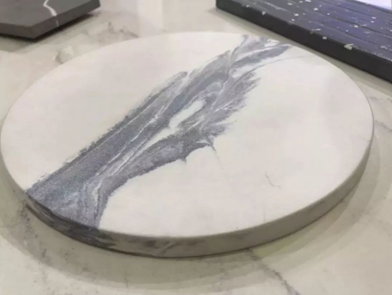 主要展示“CLAY(黏土)”系列,该概念受到米兰家具展的启发,“CLAY(黏土)”系列主要包括:水泥、树脂、水磨石、大理石等元素,展位便展示了多种元素的混搭组合,如“大理石+树脂+黏土”、“黏土+水磨石”等。