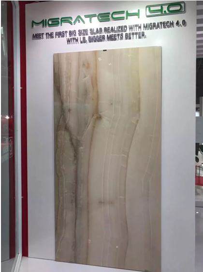 干法制粉方面,现场展示了1200x2400mm的世界首件使用干法制粉粉料的大板,其采用LB的干法制粉Migratech 4.0系统的粉料制造,吸水率低于0.5%。