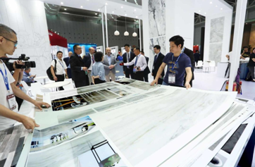 主要展示3大系列:石英石生产的新技术、整套全自动的洁具生产线、使用通体布料工艺生产的陶瓷大板,除此外,还有多项新技术产品通过展位进行介绍。
