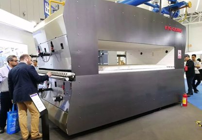 主要展示智能式喷釉系统,应用于大尺寸瓷砖,主体采用AISI304不锈钢材料制造,进砖口尺寸可在1100mm-2100mm之间,可搭配406支喷枪,并依照需要可智能选择独立运行或是同步运行。机器可搭配4或6/长度6.5m高压管;4或6/不锈钢喷枪;4或6/喷嘴。