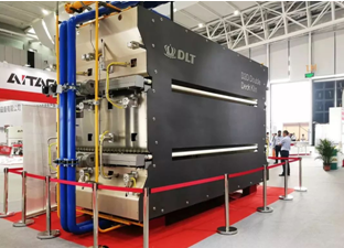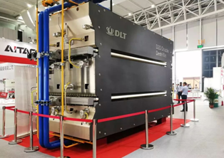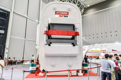 恒力泰展示了HT36000超大规格陶瓷板智能压机1:1特大模型。该压机高6.9米、长5.3米、宽4.4米,最大压制规格可达1600*3600mm,可实现柔性化定制,使大板跨界使用的创造性大大增强,同时具备数据联网功能,能够进行智能化集中控制及管理。