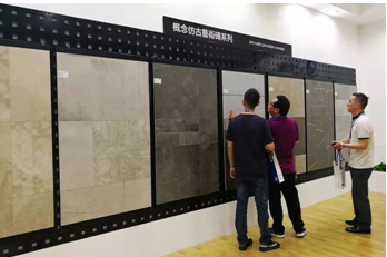 展示了概念艺术仿古系列和防滑釉、负离子釉、远红外釉等产品。