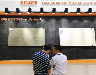 专注数字化布料的博晖,展示了多款数字化仿古砖和数字化通体砖。