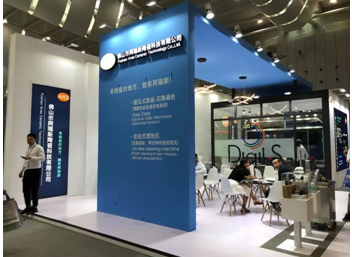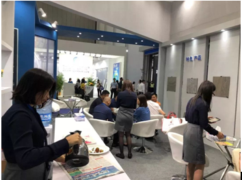 天宇企业共有三个生产基地,主要生产研发干混色料(坯用)和渗透墨水两种产品。本次展会企业展出面积200㎡,主推产品为晶彩干粒,目前处于小批量生产,市场反响很好。
