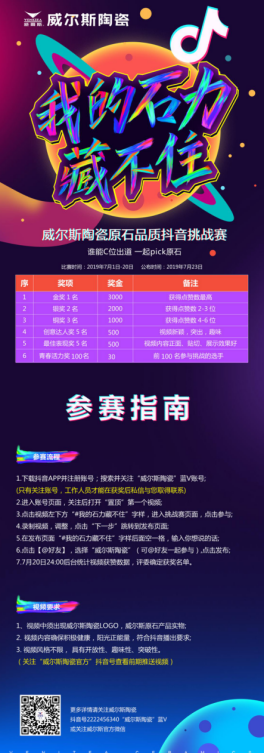 进入威尔斯陶瓷终端专卖店,根据要求录制视频抖音挑战赛。只要出现原石产品+威尔斯陶瓷logo就能参赛。威尔斯全国经销商门店欢迎各地抖友前来挑战。
