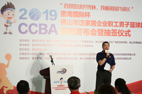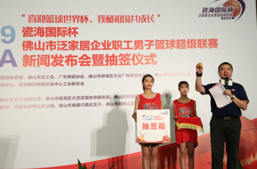 7月1日下午,由佛山市文化广电旅游体育局、佛山市总工会、广东陶瓷协会、佛山市禅城区文化广电旅游体育局、佛山市禅城区总工会主办,南庄镇总工会协办,瓷海国际陶瓷交易中心、瓷海国际陶瓷交易中心工会联合会承办的“喜迎篮球世界杯,我和祖国共成长”——“瓷海国际杯”2019佛山市泛家居企业职工男子篮球超级联赛(CCBA)新闻发布会暨抽签仪式在瓷海国际商务中心5楼隆重举行。