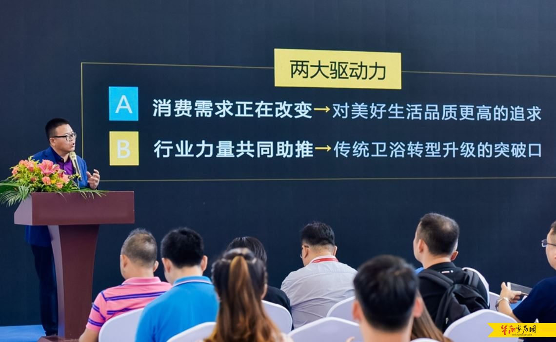 中国知名品牌专家、广东省卫浴商会党支部书记兼设计专业委员会执行会长、佛山市捌点半品牌设计机构创始人韩燕伟教授为我们讲解了对于全卫定制发展趋势下的品类思考,横跨时代的产品演变,多样新颖的观点,干货满满,赢得了满堂喝彩。