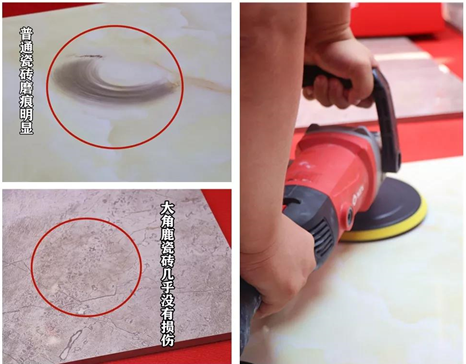 瓷砖好不好,磨磨就知道!大角鹿超耐磨大理石瓷砖品质过硬,不惧怕外力破坏,活动现场特意邀请专业人士用施工专用打磨机来挑战“超耐磨”,用它分别对普通瓷砖和大角鹿超耐磨大理石瓷砖进行高强度打磨,看看究竟谁更厉害!
