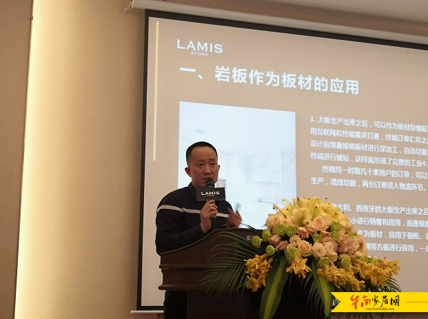 拉米斯公司总经理李晓生从岩板的发展趋势、市场分析、品牌战略规划、合伙机制等多维度作了品牌战略发布。
