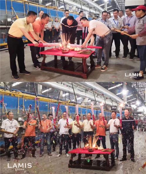2019年7月25日,拉米斯清远生产基地两条大岩板生产线成功点火投产,恒佐家居创始人、董事长李晓生与新一派建材的高层共同出现在点火仪式现场。