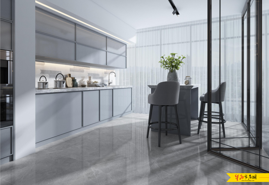 高级灰的瓷砖同时深受设计师的青睐,它有点特别又可随意搭配的特性让人觉得不仅有范儿,还深藏大师的设计格调。如果想让你家厨房看起来特别有设计感,选择高级灰的瓷砖准没错。