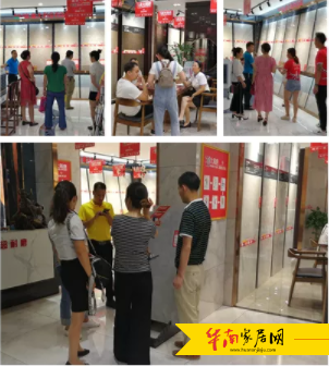 大角鹿超耐磨大理石瓷砖天柱店开业现场,不少业主组团抢购。