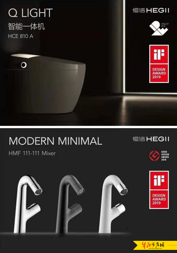 恒洁QLight智能一体机、HMF111-111龙头获得IF大奖