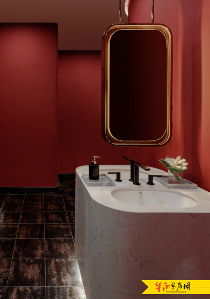 红色的墙体装饰,使整个空间变得更为热情和活力,为整个空间添加了更多的想象力,同时使不同的空间表示形成统一的整体。具有强烈的舞台感。像火焰般燃起了整片空间。
