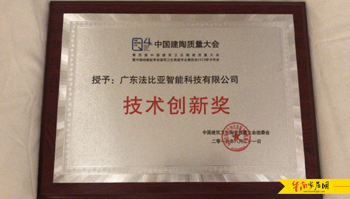 本次大会上,法比亚智能科技荣获技术创新奖、科技领先产品奖。也与其“智能卫浴时代的生活美学家 ”、以创造中国品质为己任的理念不谋而合,坚持以品质铸就品牌,科技推动品牌,口碑传播品牌为宗旨,推动行业健康可持续发展。