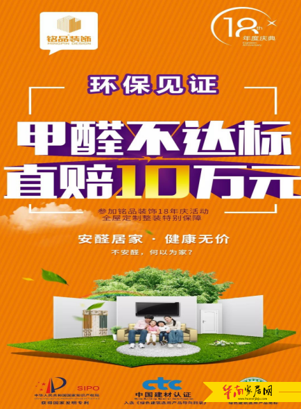 放心家装新标准,甲醛不合格,直赔10万元!