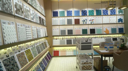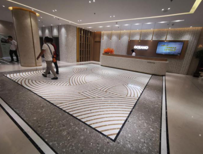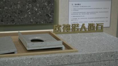 令记者惊喜的是,欧神诺首次推出的人造石、马赛克、景观厚砖三大品类新品同样通过崭新的展厅悉数亮相。