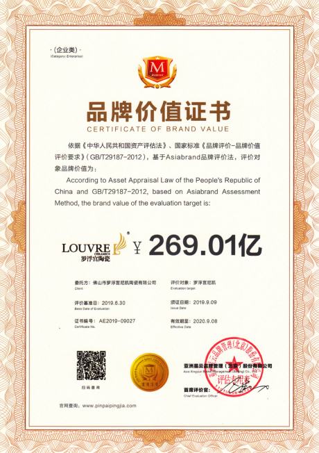 作为国际高端瓷砖品牌代表,罗浮宫陶瓷以“潮流、时尚、年轻、未来”为定位,以品牌价值269.01亿八届蝉联“亚洲品牌500强”榜单。
