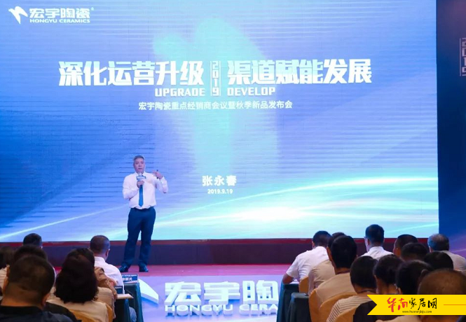 (华人设计师网报道)2019年9月18日-20日,“深化运营升级,渠道赋能发展”宏宇陶瓷重点经销商会议暨秋季新品发布会在广东佛山盛大举行。广东宏宇陶瓷控股有限公司副总经理张颖光;宏宇集团董事长助理叶劲立;宏宇事业部品牌总经理张永春、销售副总经理陈清桓、销售副总经理廖智谋、销售副总经理卢建文、创意品展中心副总经理陈天培、市场管理中心副总经理陈永成、行政内务部经理王蒙、财务部主管黄秋萍等公司领导以及全国各地近千名远道而来的重点经销商代表共赴盛会,共襄盛举。本次会议,宏宇事业部品牌总经理张永春以“深化运营升级,渠道赋能发展”为会议核心主题,全面阐释了宏宇陶瓷荣耀发展的方向规划以及战略布局。并针对如今整个陶瓷行业发展大势进行了精辟梳理和分析。结合当前行业市场环境,指出从总部到终端应形成“荣耀使命,笃行致远”的统一战斗思想,聚焦火力,荣耀奋进,共筑品牌发展新局面。