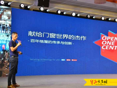 格屋南区总监陈贤智上台分享《百年格屋的传承与创新》。他介绍了格屋的发展历程以及品牌实力,同时在现场分享了格屋在门窗五金产品方面的优势。他以实际的项目案例分析了格屋产品的应用是具有品质保证的。