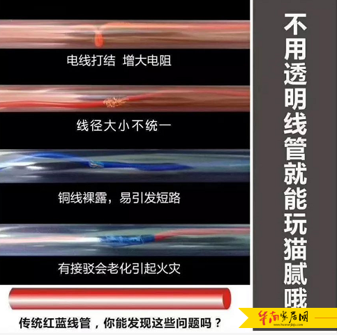 红蓝透明线管可视性强,业主或施工人员可以即时的发现或检视各种安全隐患,即时的纠正,避免后期因水电安装上的不当,给业主生命或财产安全带来损失与威胁。