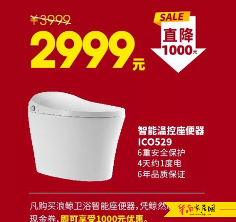 购买浪鲸ICO529智能温控座便器,凭鲸然联名卡及现金券,直降1000元。