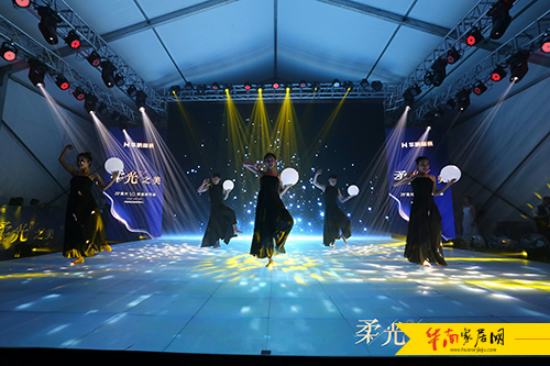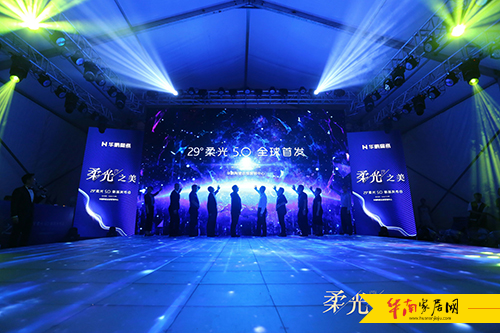 内场的L型超大互动屏幕,营造全沉浸式体验,光影穿梭,置身其中,仿佛穿越到另一个世界。舞蹈视频互动秀,以情景舞蹈的形式,带领现场观众开启一段光的旅行。通过【聚变】、【寻觅】、【缔造】、【突破】四幕,演绎陶瓷从无到有,华鹏不断突破创新,柔光5.0由此而生。超大互动屏幕的展示,也让现场观众更近距离的感受产品的硬核实力。