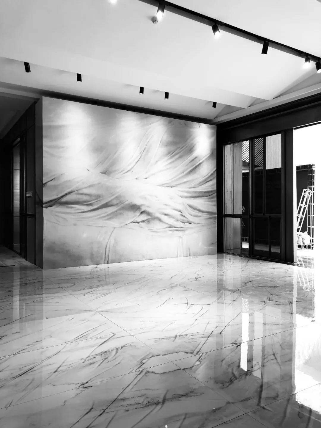 而下面这款同样属于梅西系列的新品,把丝绸的元素融入到大理石的表面,使之变得柔软,清晰的皱褶,让人有种迫不及待就想躺在柔软的丝绸当中的感受。